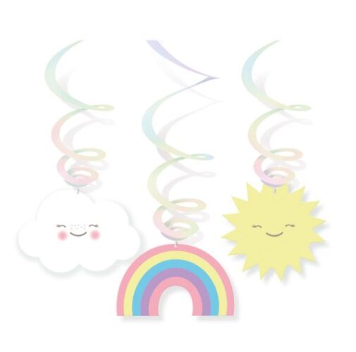 Στολίστε το χώρο του πάρτυ, με διακοσμητικά Οροφής Swirls με σχέδιο χαριτωμένο Ουράνιο τόξο, σύννεφο και ήλιο!