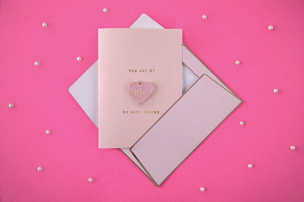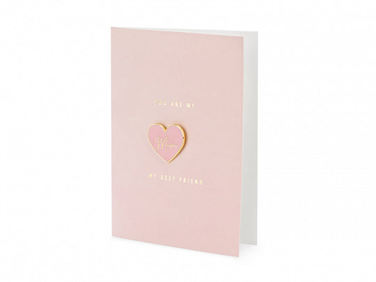 Ευχετήρια κάρτα για τη μαμά με μήνυμα ""You're my best friend"" και μαζί αποσπώμενη καρφίτσα καρδιά ""Mom"".
