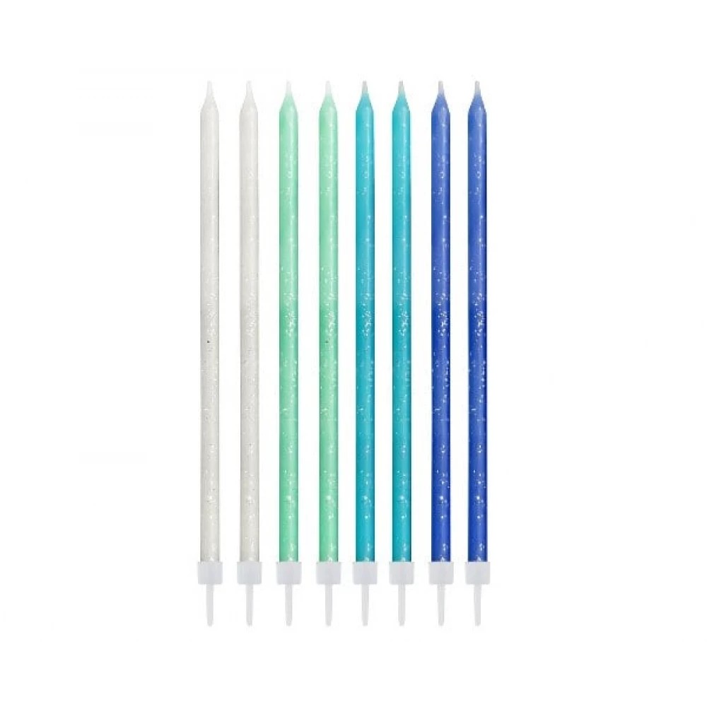 Βρείτε εδώ εντυπωσιακά ψηλά κεράκια για τούρτα σε χρώμα μπλε με γκλίτερ. Προσθέστε τα μαζί με τα κεράκια αριθμούς για πιο φαντασμαγορικό αποτέλεσμα!