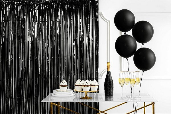 Μαύρη μεταλλική foil κουρτίνα για να διακοσμήσετε το χώρο για το πάρτυ ή το event!