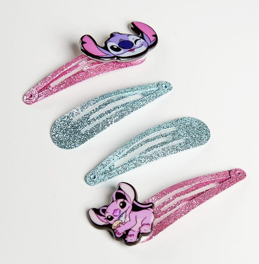 Σετ αξεσουάρ με κλιπ για τα μαλλιά με τον Stitch και την Angel, από την αγαπημένη ταινία της Disney.