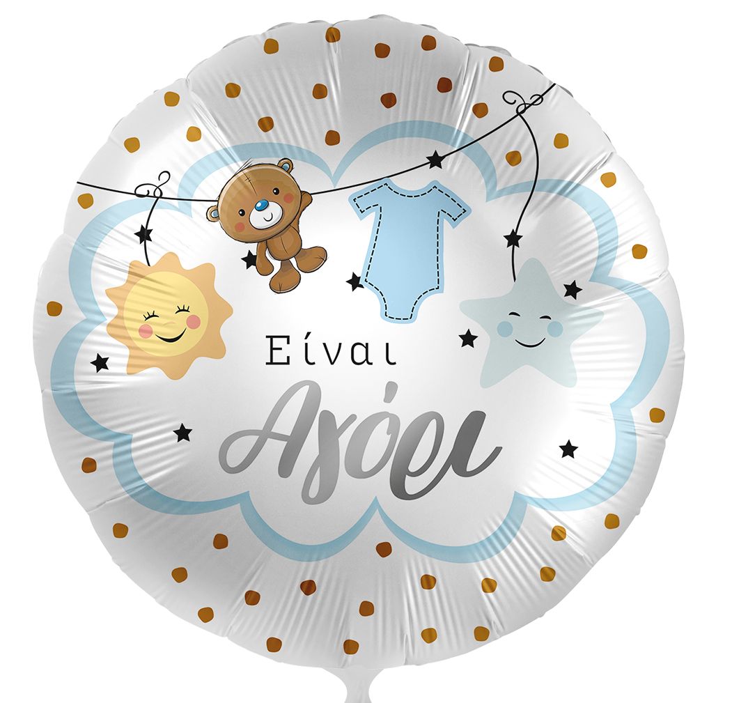 Στρογγυλό μπαλόνι με μήνυμα ""Είναι Αγόρι"" και χαριτωμένα σχεδιάκια, για να υποδεχθείτε τον μικρό πρίγκιπα!