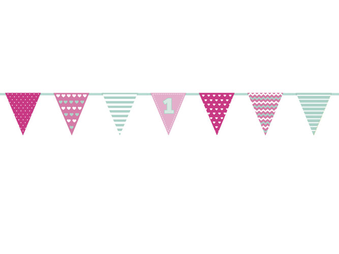 Γιρλάντα με τριγωνικά σημαιάκια 1st birthday, για να διακοσμήσετε το πάρτυ των πρώτων γενεθλίων της μικρής σας!