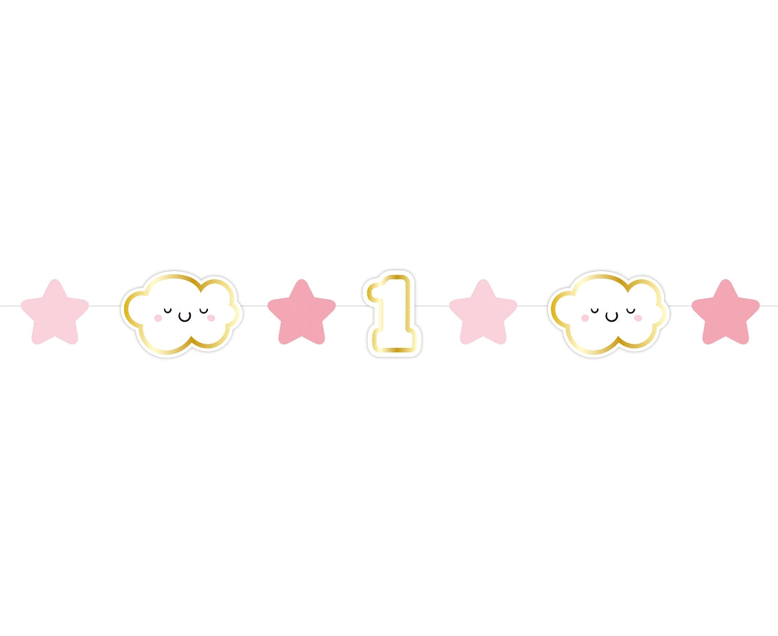 Γιρλάντα 1st birthday με συννεφάκια και αστεράκια, για να διακοσμήσετε το πάρτυ των πρώτων γενεθλίων της μικρής σας!
