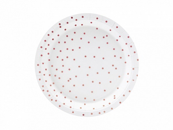 Διακοσμήστε το μπουφέ του πάρτυ και κεράστε τους καλεσμένους σας, με άσπρα πιάτα με rosegold πουά!