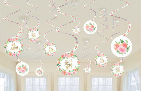 Διακοσμητικά Οροφής Swirls με σχέδιo Sweet Baby Girl, για να στολίσετε το χώρο του πάρτι ή της βάπτισης!