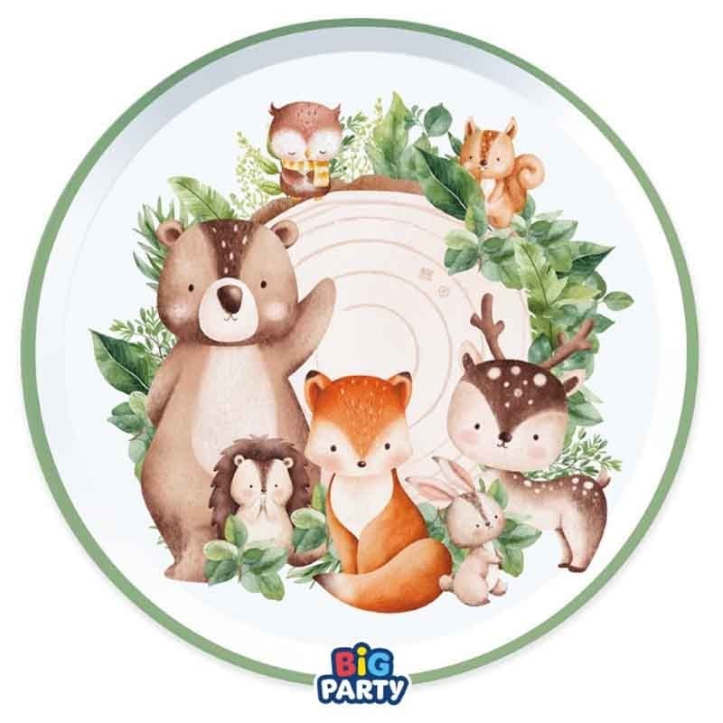 Χάρτινα πιάτα πάρτι με ζωάκια του δάσους — αλεπουδίτσες, σκιουράκια και άλλα χαριτωμένα πλασματάκια έρχονται να γεμίσουν το τραπέζι με χαρά! Ιδανικά για παιδικά γενέθλια και θεματικά πάρτι.