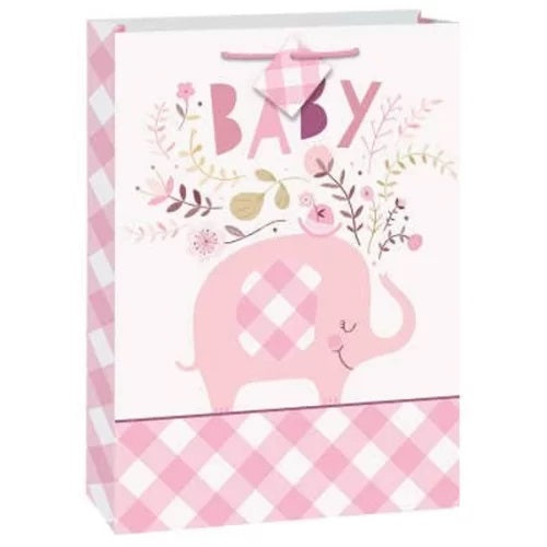 Σακούλα δώρου με σχέδιο ροζ φλοράλ ελεφαντάκι.