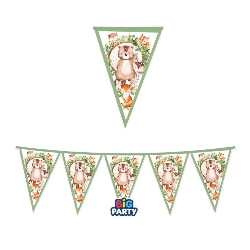 Διακοσμητική γιρλάντα με τα ζωάκια του δάσους, αλεπού, σκαντζόχοιρος, λουλούδια και φύλλα.