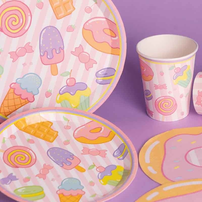 Φέρε στο τραπέζι σου μια γλυκιά και παιχνιδιάρικη διάθεση, με τα πιάτα φαγητού που απεικονίζουν γλυκά, παγωτά και ζαχαρωτά για κεράσεις τους καλεσμένους σου.