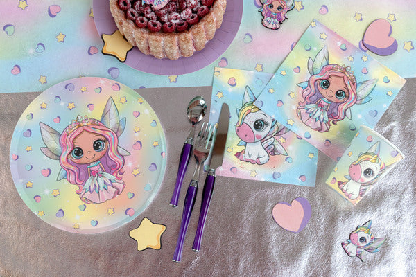 Χαρτοπετσέτες φαγητού με θέμα Νεράιδα σε υπέροχα χρώματα, για το μπουφέ του πάρτυ γενεθλίων.