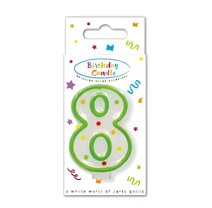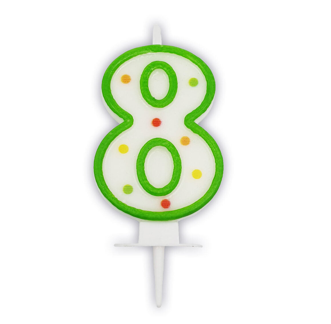 Κεράκι αριθμός 8 με πολύχρωμα πουά, για να διακοσμήστε την τούρτα γενεθλίων!