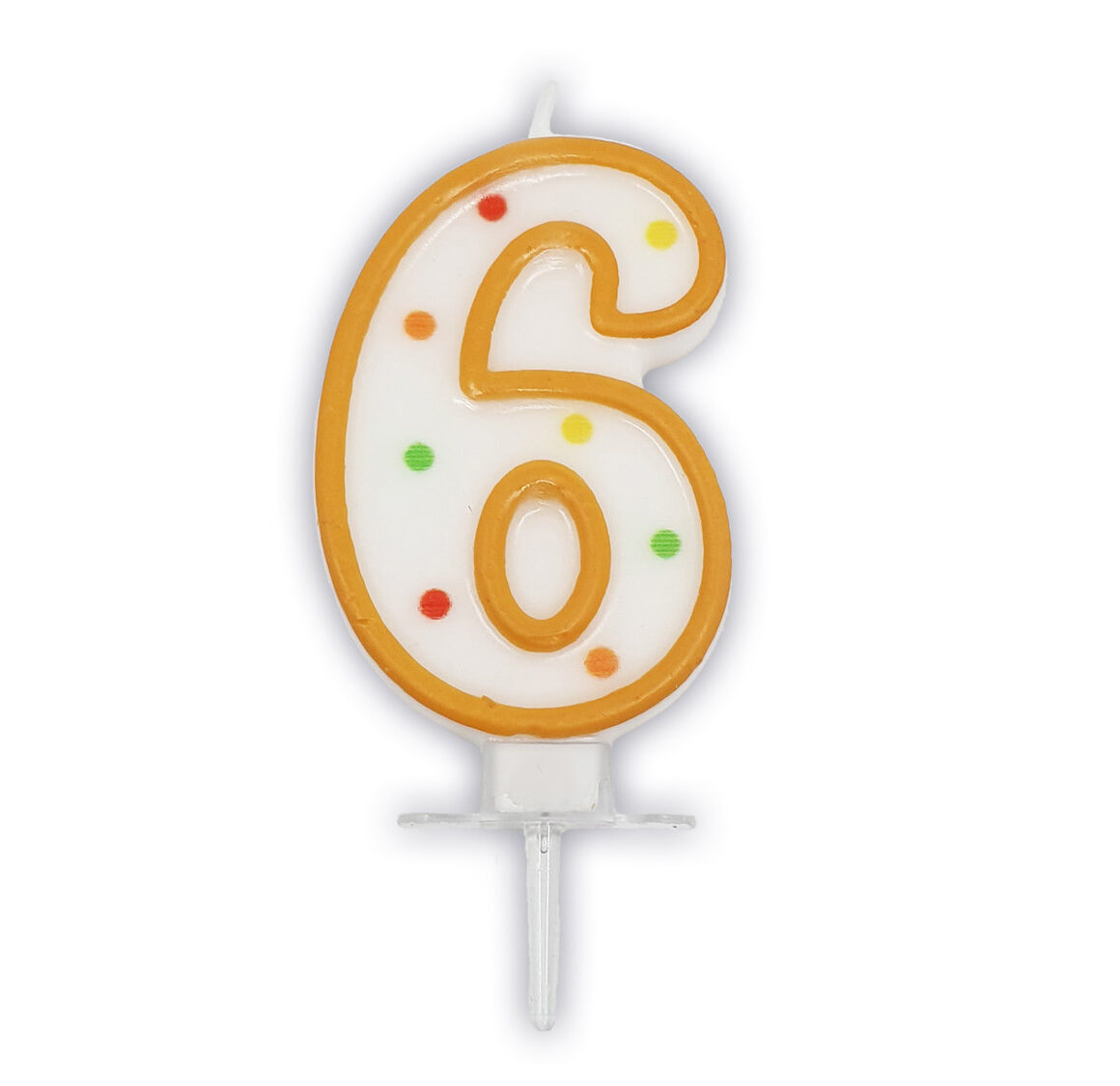 Κεράκι αριθμός 6 με πολύχρωμα πουά, για να διακοσμήστε την τούρτα γενεθλίων!