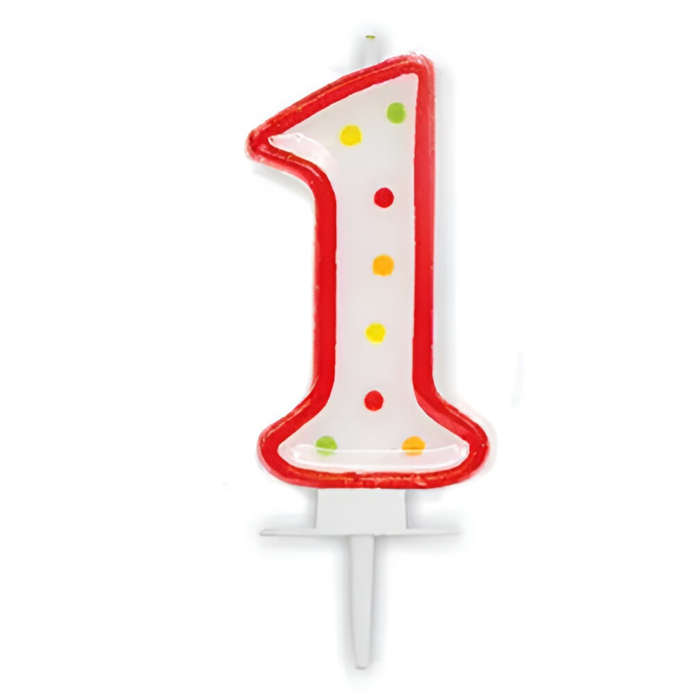 Κεράκι αριθμός 1 με πολύχρωμα πουά, για να διακοσμήστε την τούρτα γενεθλίων!