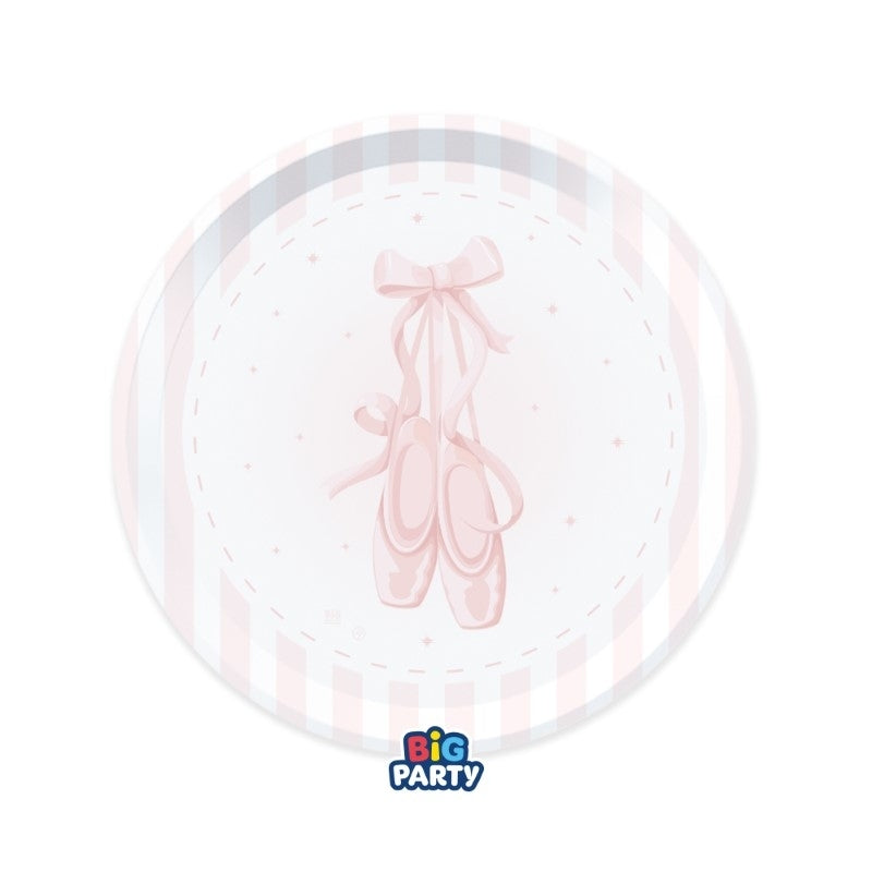Πιάτα γλυκού με θέμα την μπαλαρίνα και απεικόνιση τις πουέντ με φιόγκο, σε ροζ απαλή απόχρωση για να κεράσεις τους καλεσμένους στο πάρτυ!