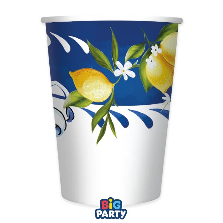 Φέρε μεσογειακή φρεσκάδα στο τραπέζι με χάρτινα ποτήρια Amalfi σε σχέδιο λεμόνια με μπλε φόντο — ιδανικά για καλοκαιρινές γιορτές και θεματικά πάρτι.