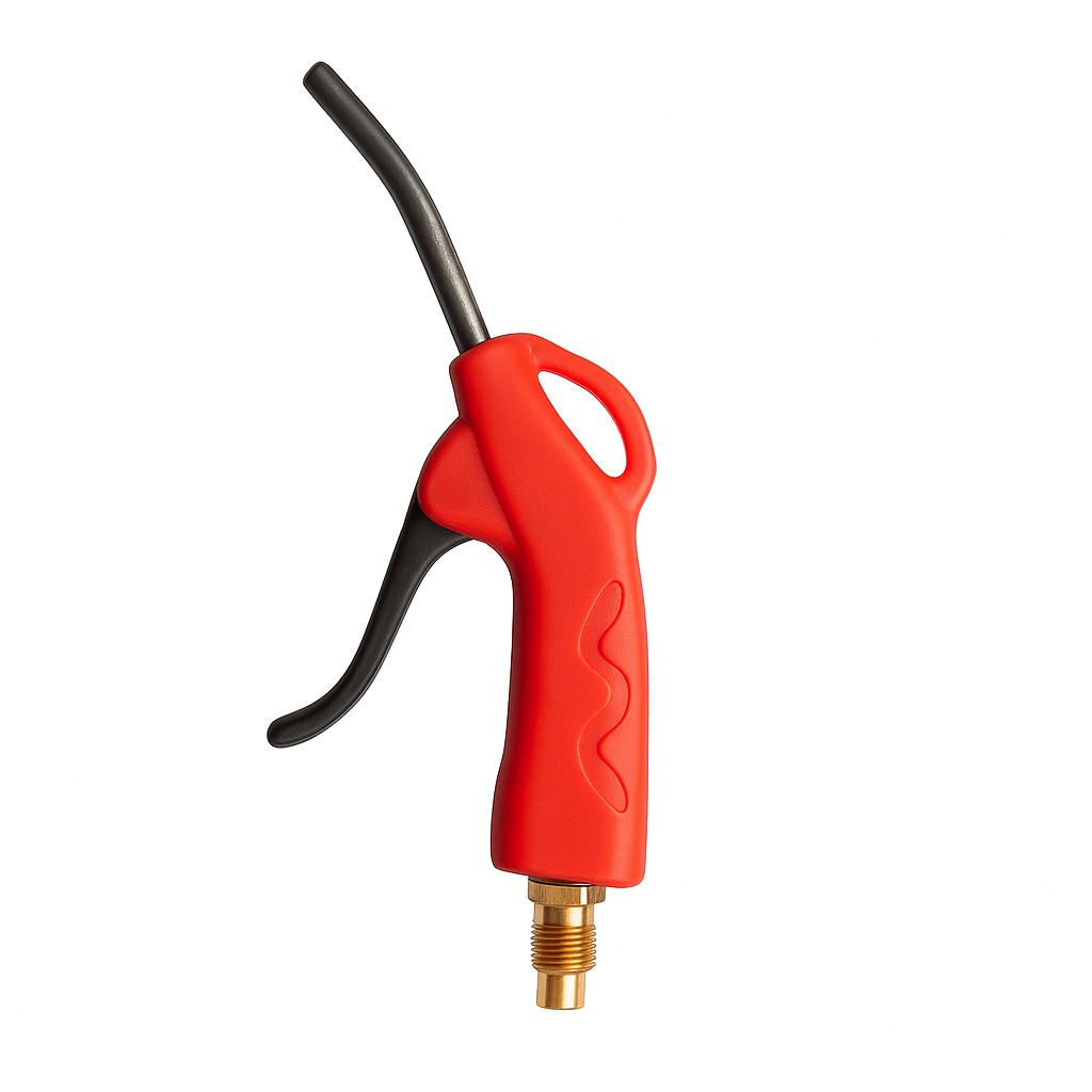 Πιστόλι για φουσκωτήρα μπαλονιών με ήλιον, διαθέτει εργονομική πορτοκαλί λαβή με μαύρη σκανδάλη και μεταλλικό γωνιακό ακροφύσιο.
