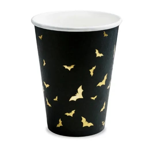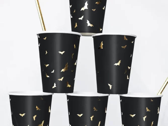 Μαύρα ποτήρια με χρυσές ανάγλυφες νυχτερίδες, για το τραπέζι του πάρτι!