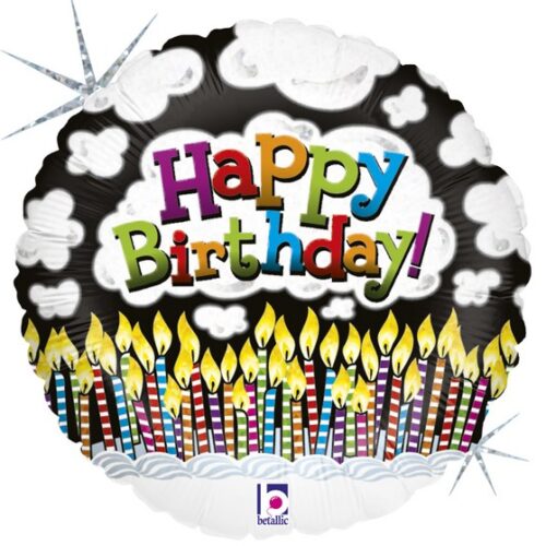 Μπαλόνι με μήνυμα ""Happy Birthday"" και σχέδιο τούρτα με κεράκια, για να διακοσμήσετε το πάρτυ γενεθλίων!
