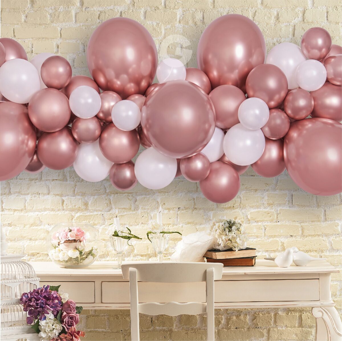 Δημιουργήστε ένα υπέροχο στολισμό με αυτή τη γιρλάντα μπαλονιών σε χρώματα rosegold και άσπρο! Αποτελεί μοναδική διακόσμηση αλλά και photobooth για τις φωτογραφίες σας!