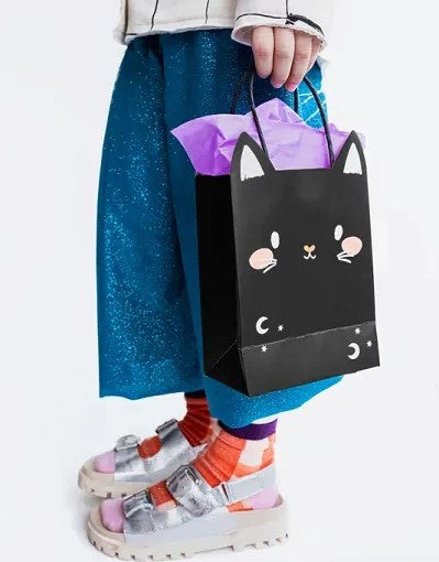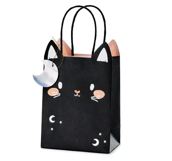 Τσάντα δώρου με σχέδιο μαύρη χαριτωμένη Γατούλα, μαζί με καρτελάκι σε σχήμα φεγγάρι.