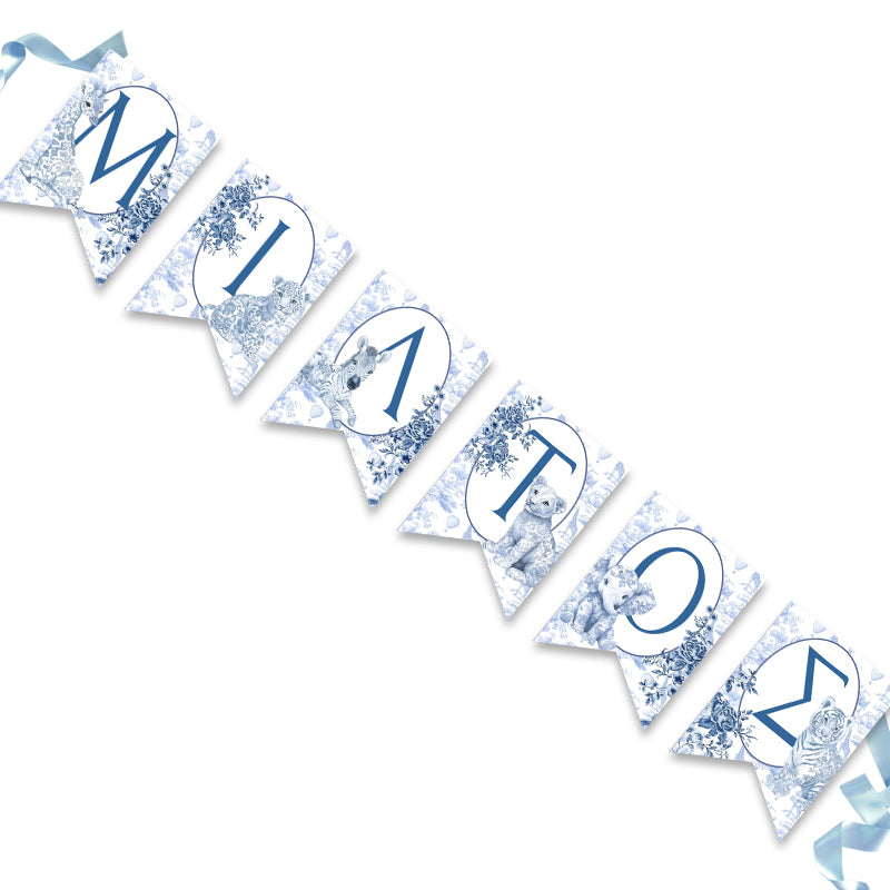 Σημαιάκια Mε 'Oνομα - Blue Toile Ζώα Της Ζούγκλας, για να στολίσετε το χώρο της βάπτισής ή του πάρτυ και να εντυπωσιάσετε!