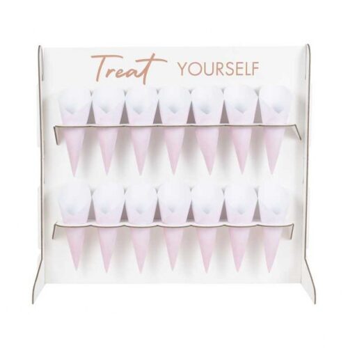 Βάση για χωνάκια ζαχαρωτών με 14 θέσεις σε λευκό χρώμα και μήνυμα ""Treat yourself"" για για ένα όμορφο μπουφέ στη βάπτιση, το γάμο ή το πάρτυ. Κεράστε τους καλεσμένους σας λαχταριστά ζαχαρωτά!