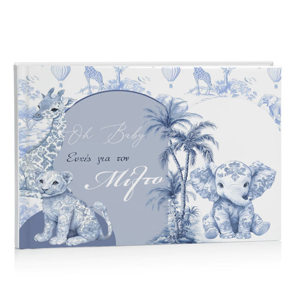 Εντυπωσιακό, χειροποίητο Βιβλίο Ευχών - Blue Toile Ζώα Της Ζούγκλας για τη Βάπτιση του μωρού σας! Κρατήστε για πάντα τις ευχές των καλεσμένων σας σε ένα όμορφο ευχολόγιο.