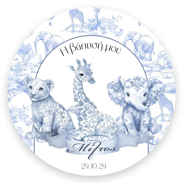 Αφίσα Βάπτισης - Blue Toile Ζώα Της Ζούγκλας Στρογγυλή 1,30m