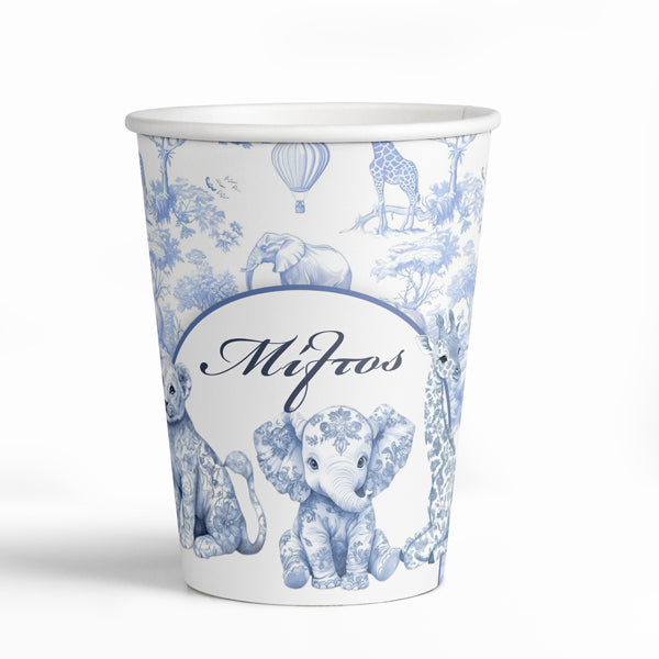 Ποτηράκια με το όνομα του μικρού σας και θέμα Blue Toile Ζώα Της Ζούγκλας (3 τεμ), για να κεράσετε τους καλεσμένους σας στο τραπέζι του πάρτυ ή της βάπτισης!