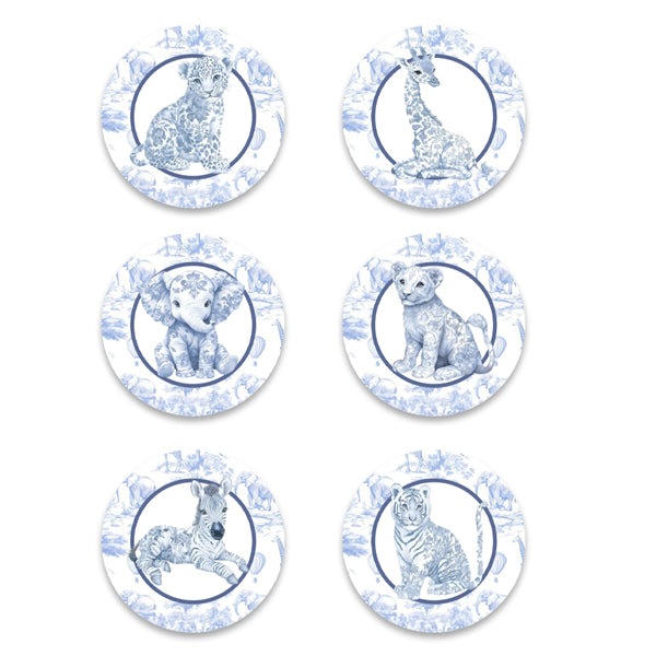 Σετ κονκάρδες με σχέδιο Blue Toile Ζώα Της Ζούγκλας ! Φορέστε τις στο πάρτυ γενεθλίων, στη θεματική βάπτιση ή διακοσμήστε τα αγαπημένα σας αντικείμενα!