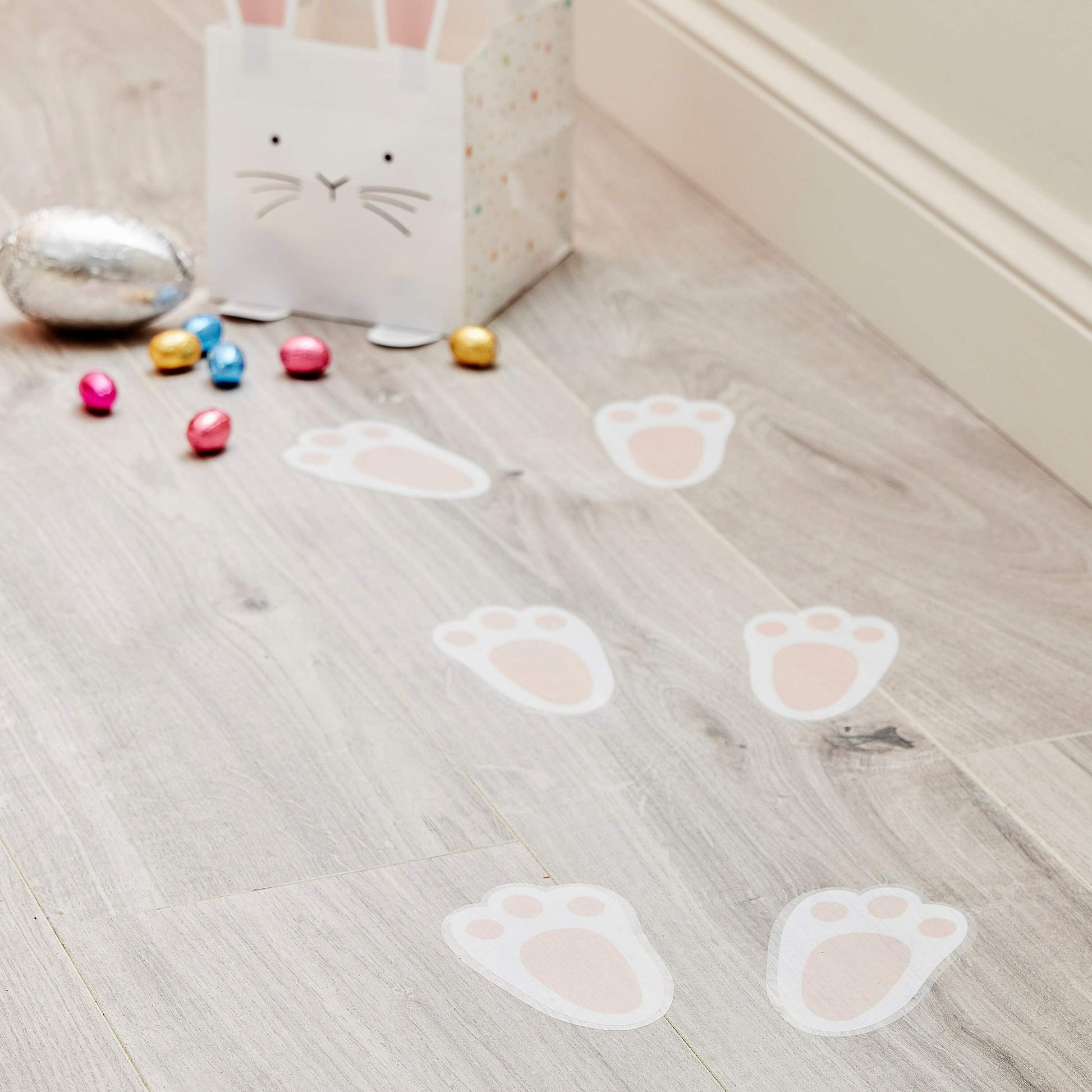 Αυτοκόλλητα πατουσάκια από Κουνελάκι, για μια εντυπωσιακή διακόσμηση στην εκδήλωση! Μια όμορφη ιδέα είναι να τοποθετήσεις τα αυτοκόλλητα το έδαφος για να ξέρουν οι καλεσμένοι την κατεύθυνση που πρέπει να ακολουθήσουν για Πασχαλινό τραπέζι!