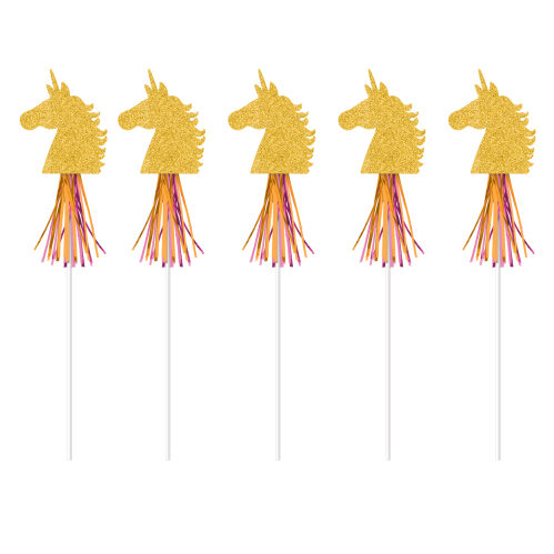 Εντυπωσιακά ραβδάκια με χρυσό μονόκερο και φούντες, για τις μικρές καλεσμένες του πάρτυ!