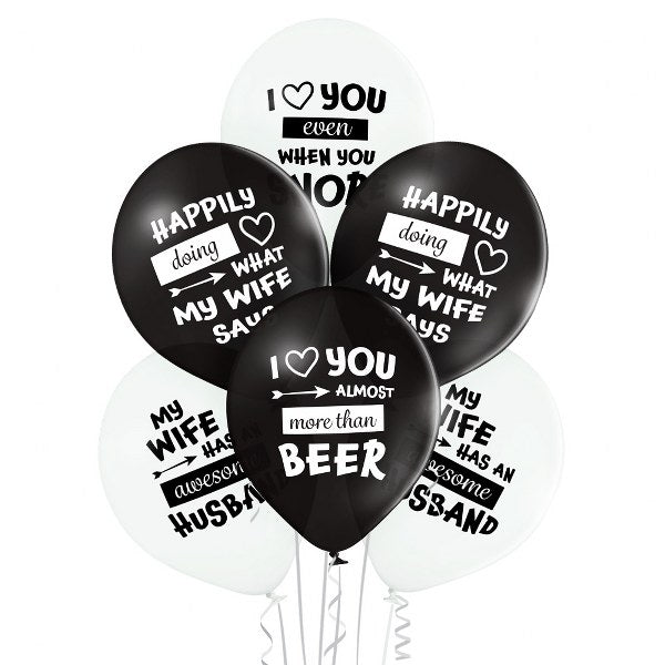 Latex μαύρα και λευκά μπαλόνια με χιουμοριστικά μηνύματα για την καλύτερη σύζυγο!