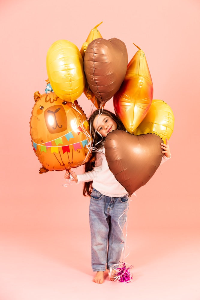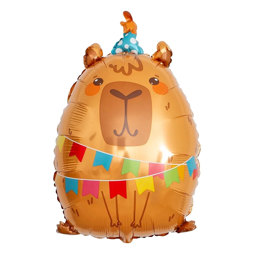 Εντυπωσιακό μπαλόνι με το αγαπημένο ζωάκι καπιμπάρα, που φοράει καπελάκι και είναι στολισμένο με πολύχρωμα σημαιάκια!