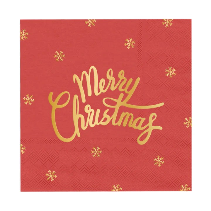 Χαρτοπετσέτες κόκκινες με χρυσή εκτύπωση 'Merry Christmas' για να σερβιριστούν οι καλεσμένοι σας στο γιορτινό τραπέζι των Χριστουγέννων!
