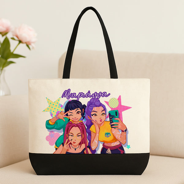 Λινή Τσάντα K-Pop Demon Hunters για τις φαν των αγαπημένων ηρώων. Κομψή και πρακτική, ιδανική επιλογή για κάθε μέρα.