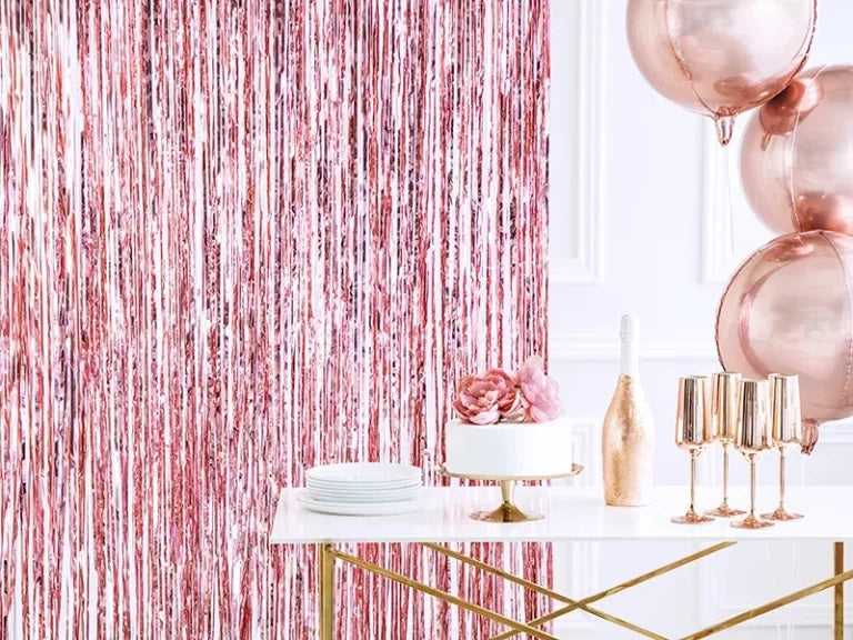 Ροζ-Χρυσή διακοσμητική κουρτίνα από foil υλικό. Είναι στη μόδα & πολύ εντυπωσιακή! Ιδανική για γενέθλια, γάμο, βάπτιση και κάθε είδους πάρτι!