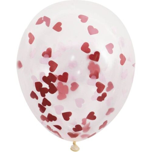 Σετ μπαλόνια διάφανα με κόκκινο κομφετί σε σχήμα καρδιάς, για να στολίσετε εντυπωσιακά τον χώρο του πάρτυ επετείου ή του σπιτιού την ημέρα των Ερωτευμένων!