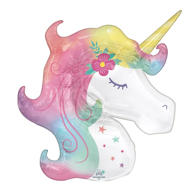Μπαλόνι σε σχήμα Μονόκερο, σε παστέλ αποχρώσεις ροζ, μοβ, γαλάζιο, πράσινο, κίτρινο και λουλούδι στο κεφάλι!
