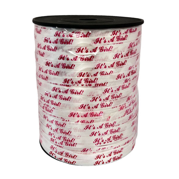 Άσπρη ξυλοκορδέλα με μήνυμα It's a Girl, κατάλληλη για να δέσετε μπαλόνια, να φτιάξετε δώρα, στολισμούς με λουλούδια κ.α.