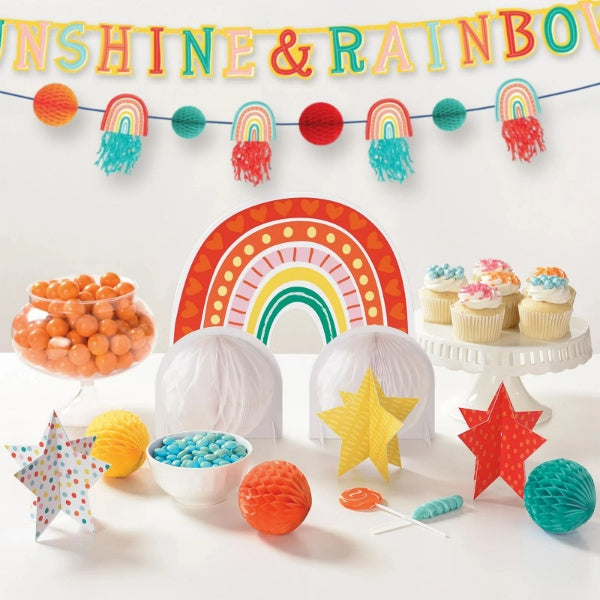 Πιάτα φαγητού χάρτινα με σχέδιο ρέτρο Ουράνιο Τόξο, για να σερβιριστούν οι καλεσμένοι σας στο θεματικό πάρτυ ή τη βάπτιση!