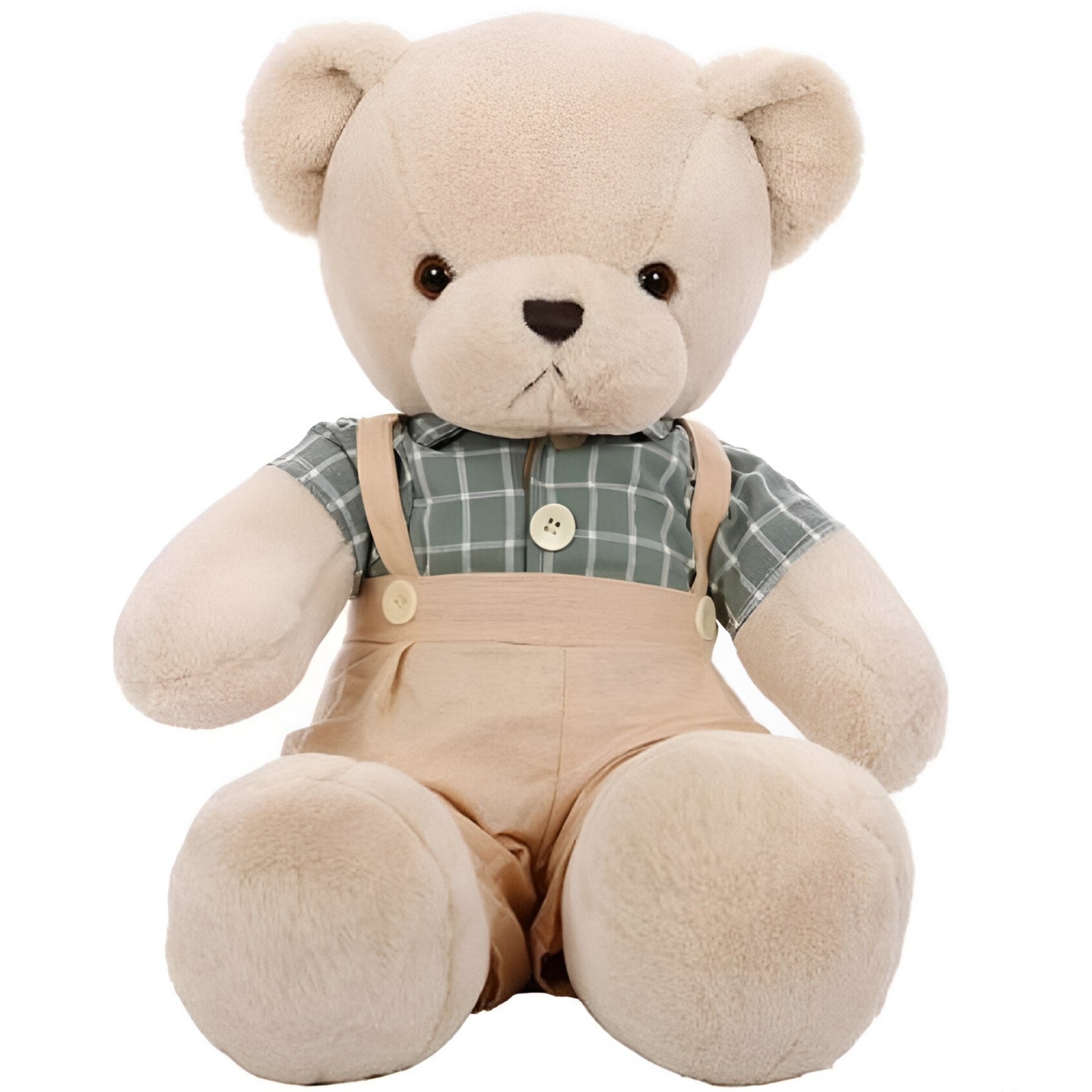 Λούτρινο αρκουδάκι με καρώ πουκάμισο και τιράντες, για διακόσμηση βάπτισης, πάρτυ ή για ένα μοναδικό δώρο!