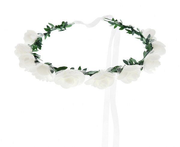 Εντυπωσιακό στεφάνι για τα μαλλιά με πρασινάδα, λευκά τριαντάφυλλα και τούλι!