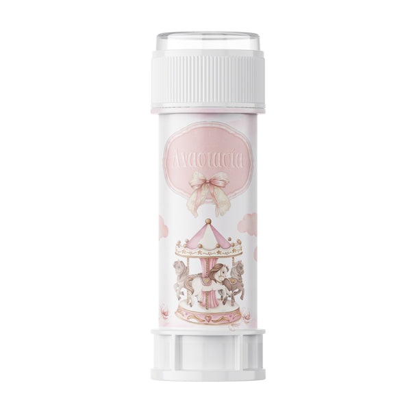 Προσωποποιημένες σαπουνόφουσκες με θέμα Ροζ Καρουζέλ για να χαρίσετε ως δωράκι στα παιδάκια της βάπτισης ή ή για να τις φτιάξετε ως μπομπονιέρα.