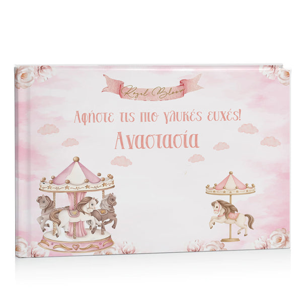 Εντυπωσιακό, χειροποίητο Βιβλίο Ευχών - Ροζ Καρουζέλ για τη Βάπτιση του μωρού σας! Κρατήστε για πάντα τις ευχές των καλεσμένων σας σε ένα όμορφο ευχολόγιο.