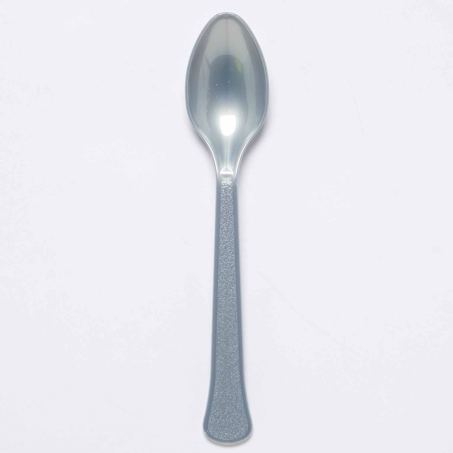 Επαναχρησιμοποιούμενα πλαστικά κουταλάκια σε γκρι/ασημί χρώμα. Μια πρωτότυπη σειρά από επαναχρησιμοποιήσιμα προϊόντα, κατάλληλα για καθημερινή χρήση αλλά και για κάθε εκδήλωση όπως γενέθλια, πάρτι ή άλλες εορταστικές περιστάσεις.