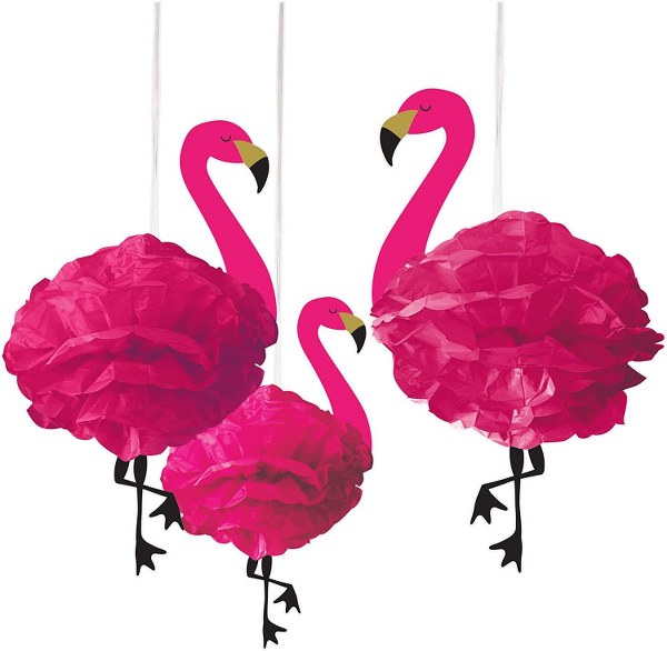 Κρεμαστά διακοσμητικά οροφής, φούξια pom pom, με σχέδιο Φλαμίνγκο! Στόλισε μοναδικά το καλοκαιρινό πάρτυ ή τη βάπτιση!