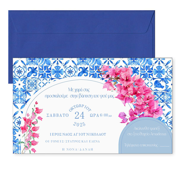 Προσκαλέστε τα αγαπημένα σας άτομα στην βάπτιση του μωρού σας με προσκλητήριο στο πιο γλυκό θέμα Βουκαμβίλια Με Μακρόστενο Φάκελο!