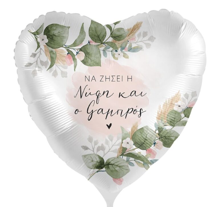 Μπαλόνι σε σχήμα καρδιάς με μήνυμα ""Να ζήσει η Νύφη κι ο Γαμπρός"" και φλοράλ σχέδιο. Ιδανικό για τον στολισμό του τραπεζιού του γάμου ή του σπιτιού κατά τις γαμήλιες προετοιμασίες!